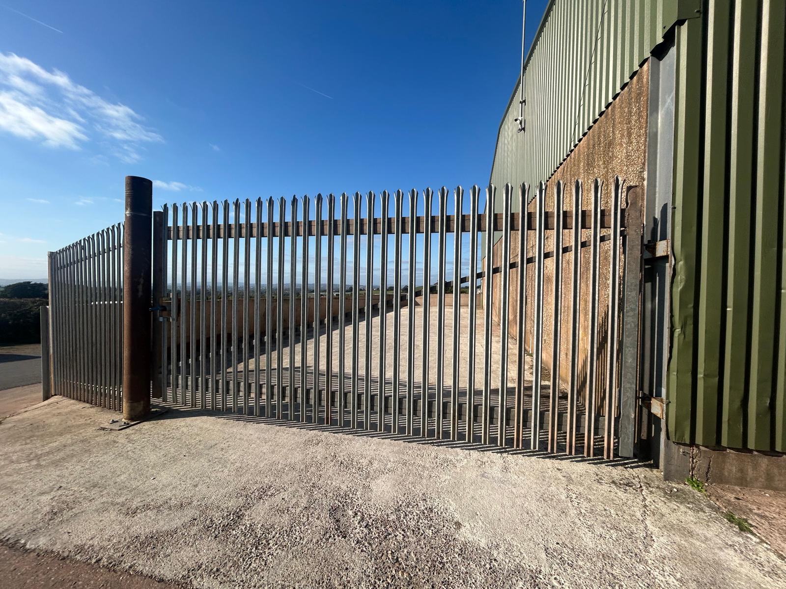 The property comprises an end-terrace warehouse constructed with steel sheet cladding. It features a substantial yard area of approximately 1,700 sq ft (157.9 sq m).